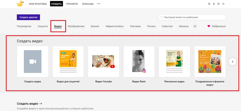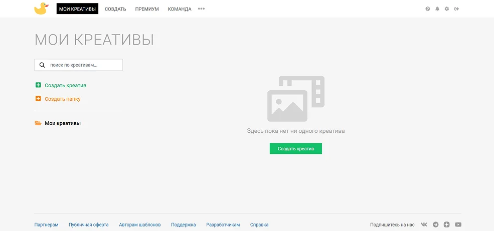Нажмите на «Создать креатив», чтобы сразу начать работать в редакторе.
