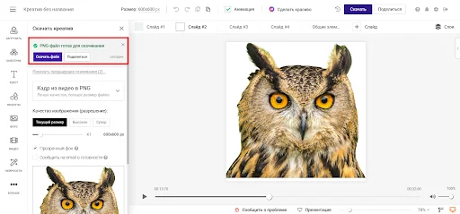 Если в креативе несколько слайдов, редактор предложит применить к файлу дополнительные настройки: