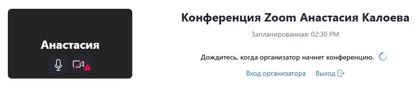 Зал ожидания. Если организатор включил эту функцию, перед входом в конференцию появится экран с сообщением: «Дождитесь, когда организатор начнет конференцию».
