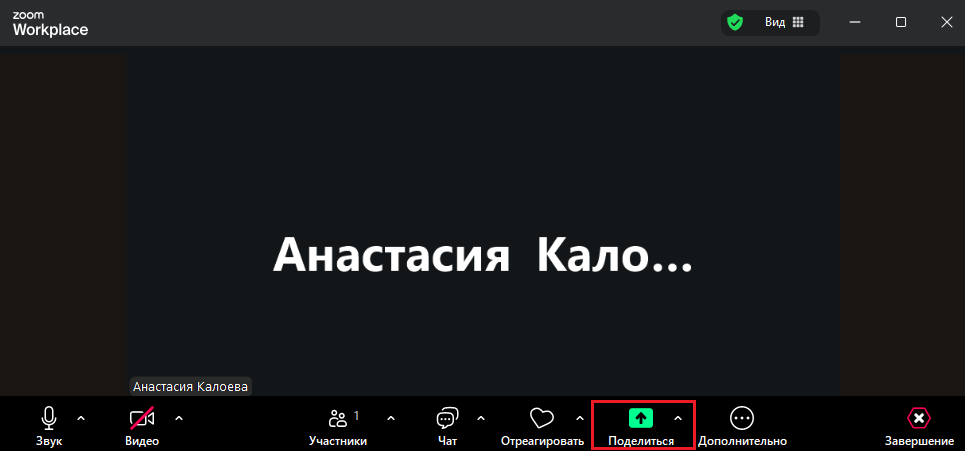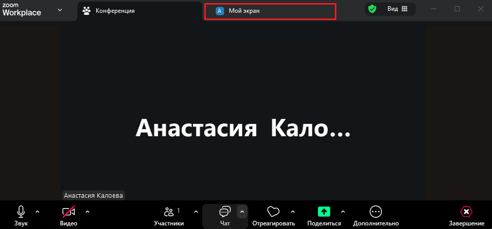 После активации демонстрации в окне конференции появится новая вкладка «Мой экран». По клику на нее откроется окно, которое видят остальные пользователи.