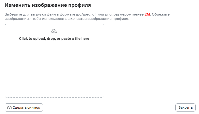 Если кликнуть на изображение профиля, откроется окно для загрузки фотографии. Для рабочего аккаунта лучше загрузить деловое фото с нейтральным фоном, где хорошо видно лицо.