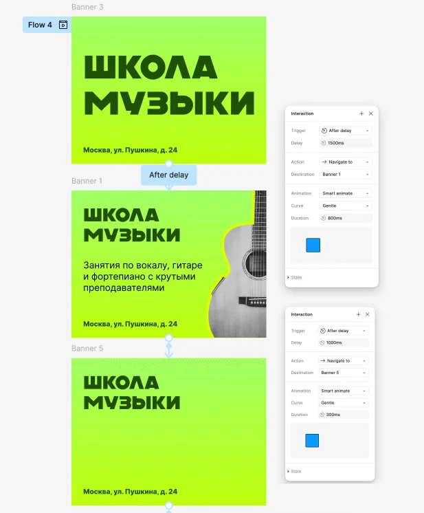 Эти инструменты позволяют быстро создать базовую анимацию в Figma. Посмотрим, для чего они могут пригодиться.
