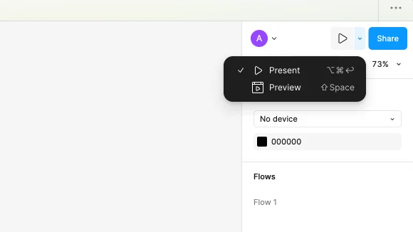 После настройки всех переходов вы можете протестировать анимацию, нажав на кнопку Present в правом верхнем углу интерфейса Figma.