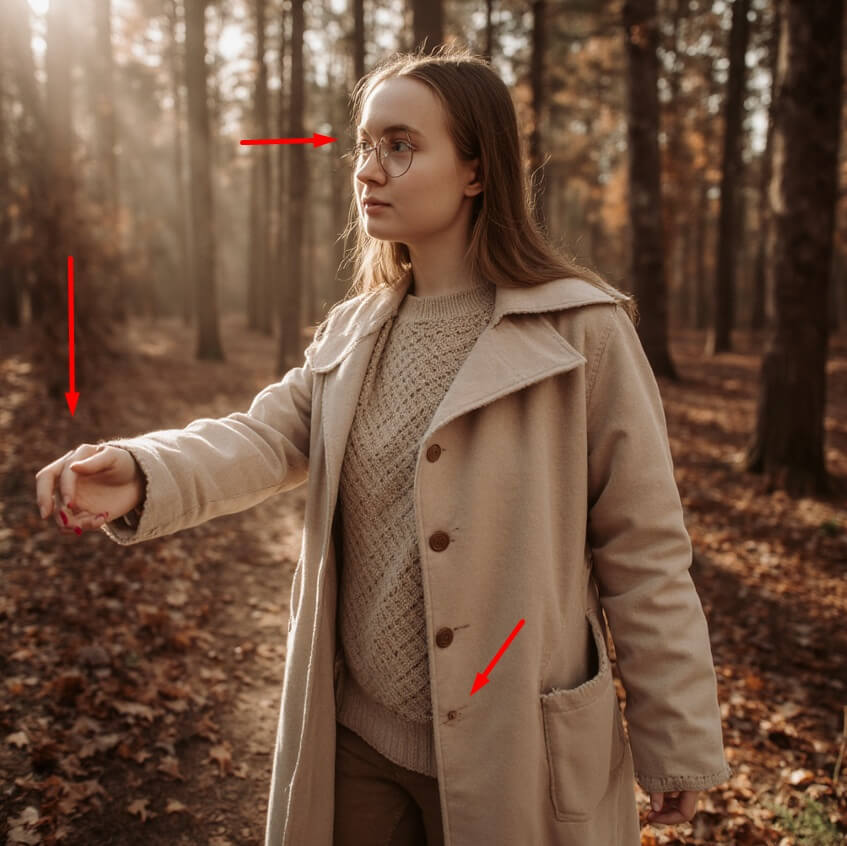 Руки. Появляются лишние пальцы, странные изгибы или неестественные положения. Особенно если персонаж держит сумку, поправляет волосы или показывает жест.