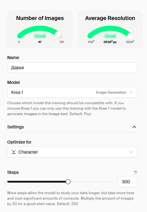 В Krea есть режим Train — он позволяет обучить нейросеть на готовых изображениях. Например, на ваших селфи или предыдущих фотосессиях.