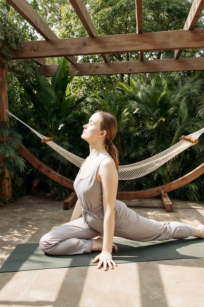 | S — Setting (настройка, окружение, локация) | A wooden balcony surrounded by lush green foliage, bathed in warm afternoon sunlight. Gentle wind stirs the leaves and creates soft motion in the woman’s hair and robe. The background is slightly blurred, evoking a calm summer day in nature. | Деревянный балкон, окруженный густой зеленью. Теплый дневной свет мягко освещает листву и кожу. Легкий ветер колышет волосы и ткань халата, создавая естественное движение. Фон слегка размытый, атмосфера спокойная, летняя, реалистичная. |