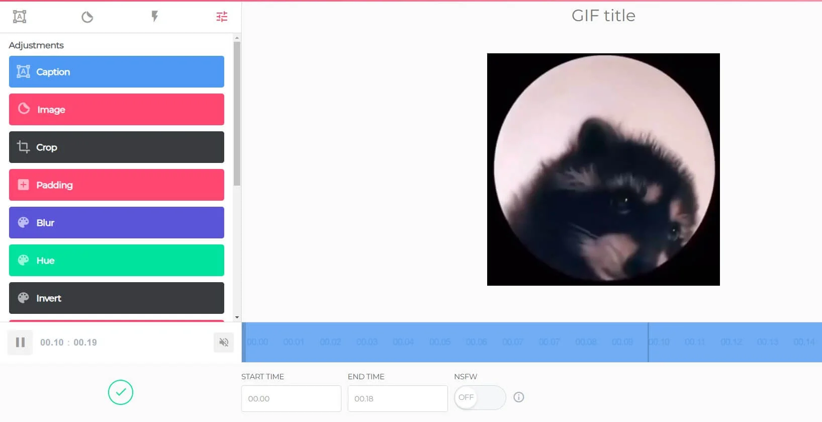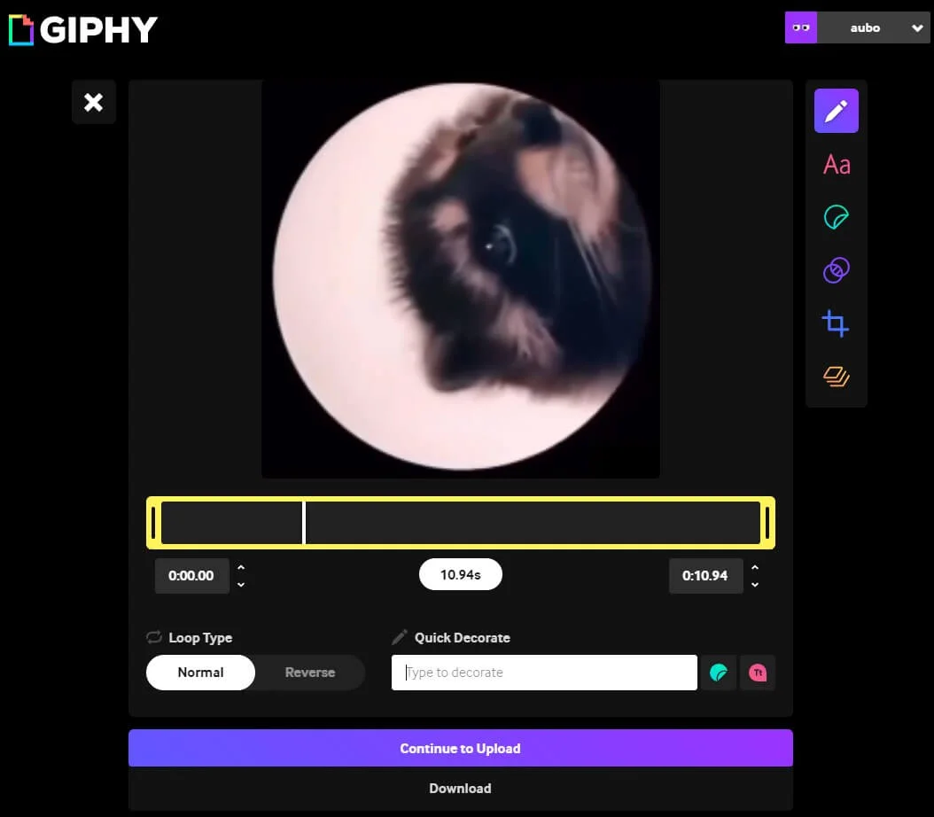 Можно редактировать гифку: обрезать, наложить текст, стикеры, блюр, редактировать цвет изображения и зациклить его.