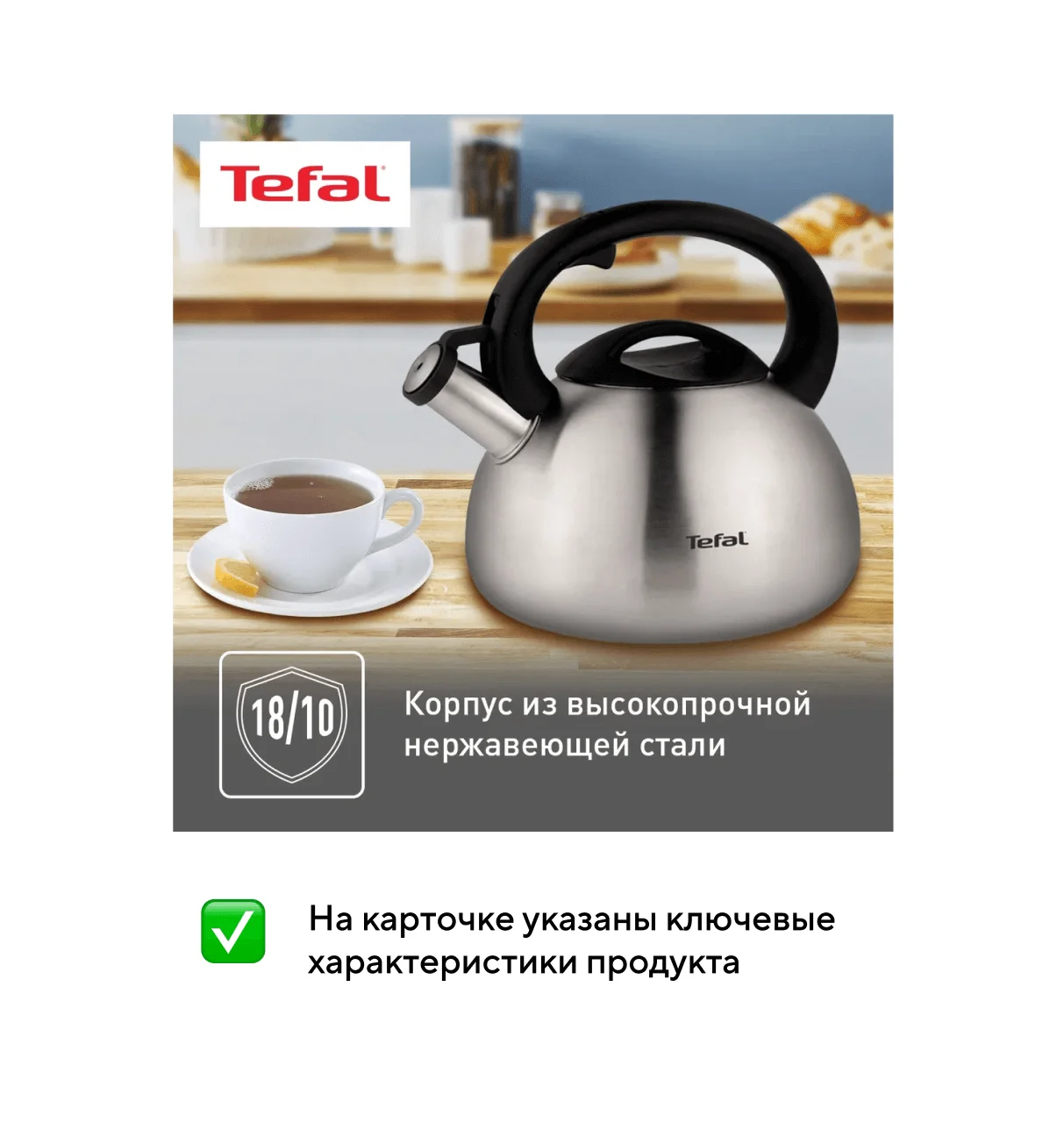 А в этом примере акцентировали внимание на материале чайника. Нержавеющая сталь — 18% никеля и 10% хрома: