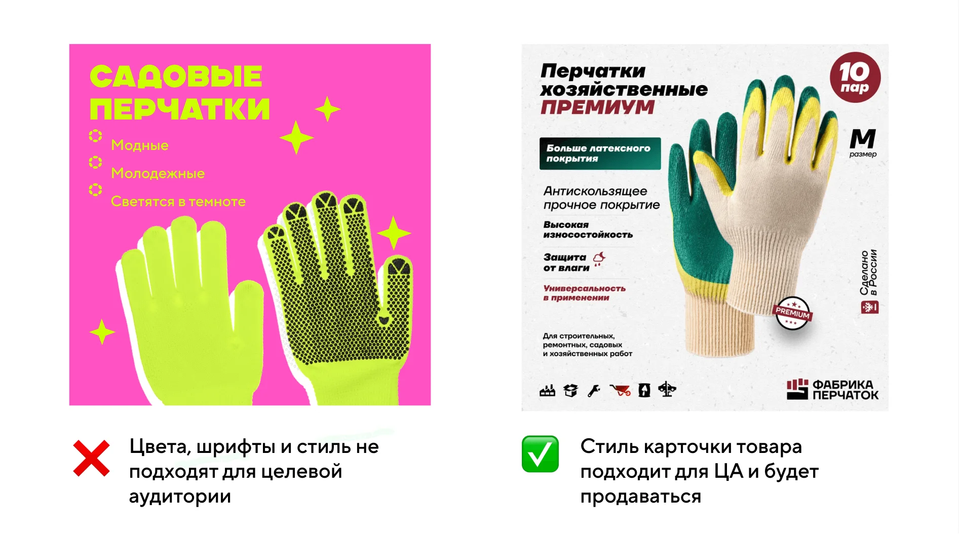 Если ваша аудитория молодая, могут подойти яркие цвета и необычные шрифты. Для более взрослой целевой аудитории подойдут более сдержанные лаконичные карточки. Не стоит использовать серую и скучную инфографику, если продаете детские игрушки. А если ваш товар — садовые принадлежности, неоновые цвета вряд ли привлекут нужных покупателей.