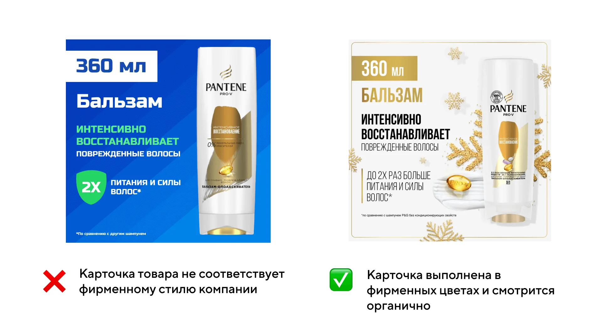 Учитывайте интерфейс площадки. При создании макетов принимайте во внимание расположение плашек и тегов — их ставит маркетплейс для сообщения о скидках и бонусах. Инфографика не должна перекрываться или конфликтовать с этими элементами.
