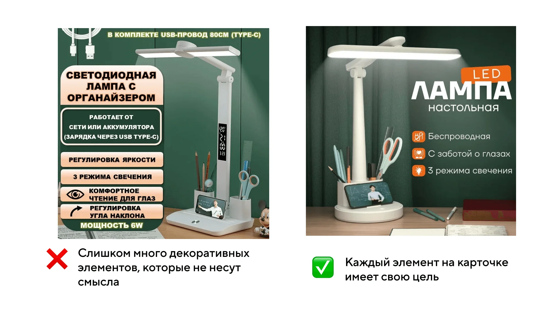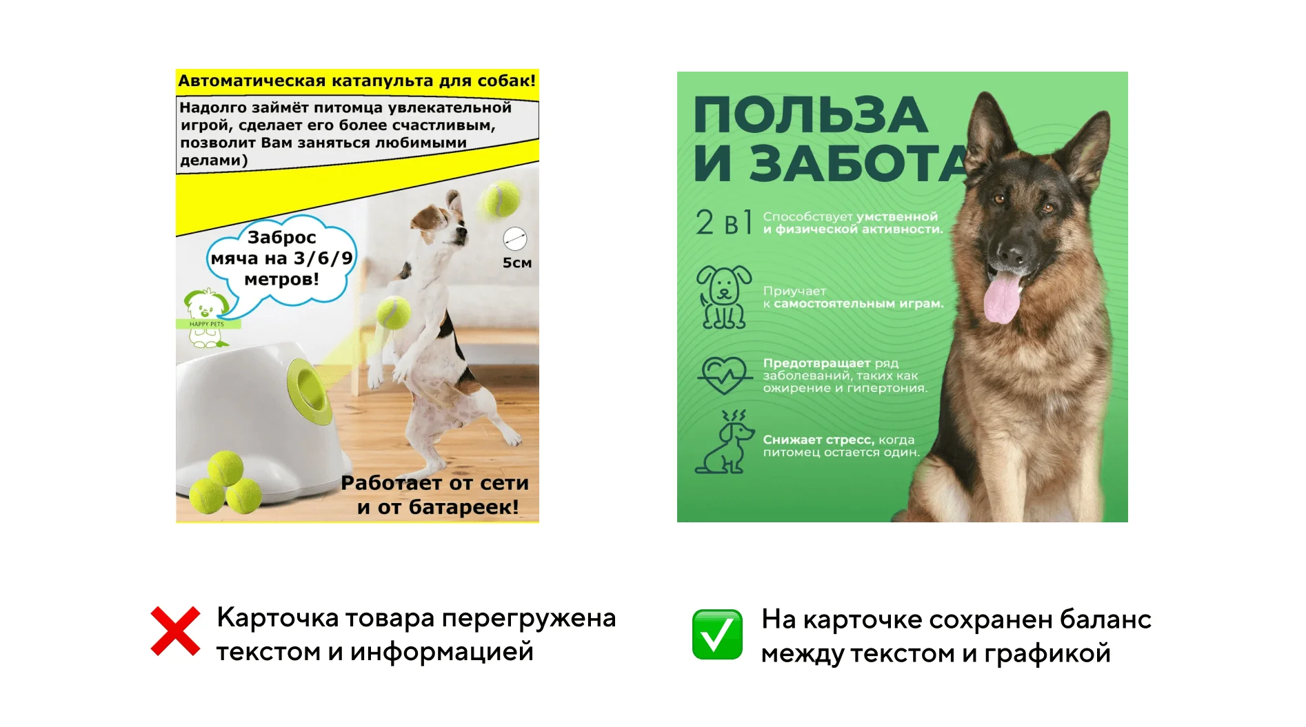 Перегруженность информацией. Не пытайтесь уместить на карточку слишком много информации. Это затрудняет восприятие и может отпугнуть покупателей. Лучше сосредоточиться на ключевых преимуществах и характеристиках товара. А если информации все-таки много, всегда можно вывести часть на следующую карточку.