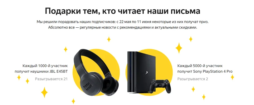 А если хотите собрать базу побольше, подключайте игровую механику — устройте розыгрыш призов. Но о содержании рассылки тоже не забывайте, иначе люди быстро отпишутся.