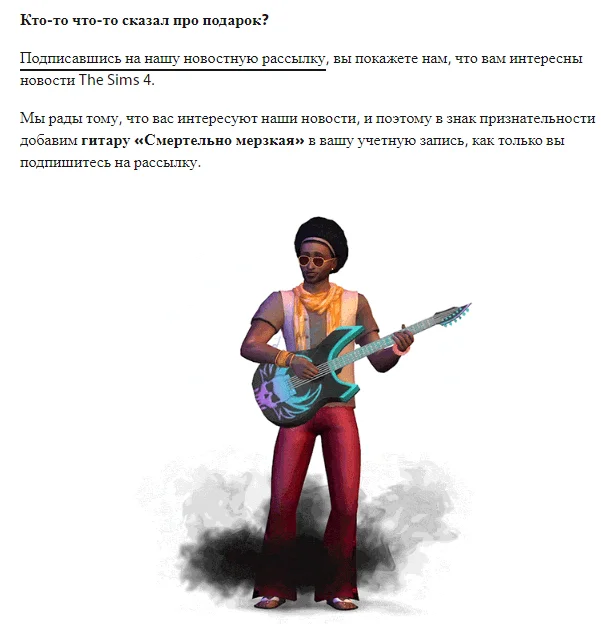 А если подписаться на рассылку The Sims 4, в подарок дадут гитару — добавят прямо в учётную запись.
