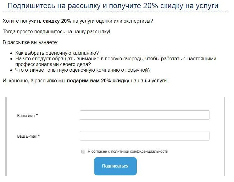 На такую рассылку подпишутся те, кто уже лоялен к компании, эксперту, блогу. Для остальных форма выглядит не очень убедительно — как просьба оставить email непонятно зачем.
