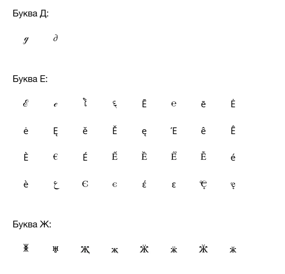 Увы, но вариантов для креатива на кириллице, как волос на голове лысого из «Браззерс» — катастрофически мало. У большинства кириллических знаков просто нет аналогов в Юникоде.