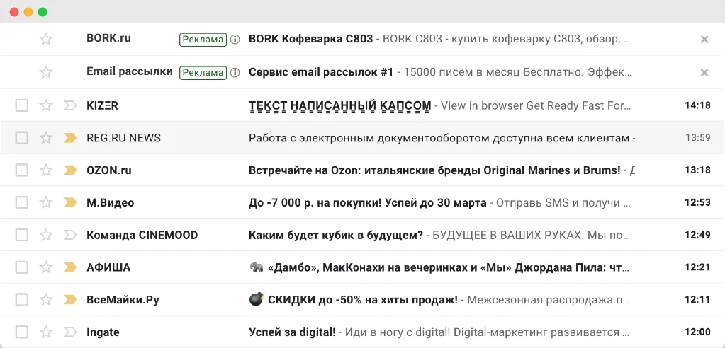 Компании очень стараются, чтобы выделится в почтовых ящиках: они используют эмоджи и креативные заголовки, экспериментируют с прехедерами. Но эти приёмы популярны среди маркетологов и уже вряд ли удивят подписчиков.