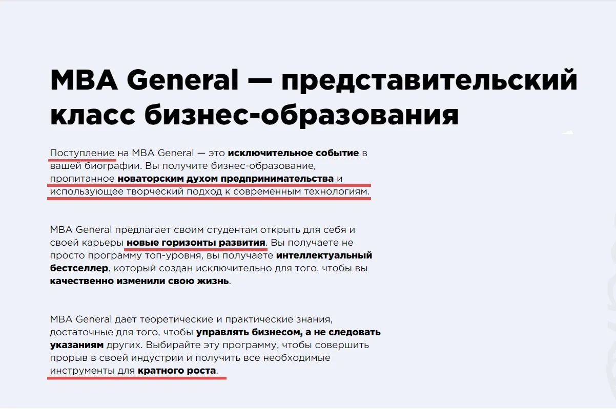 Делать длинный лендинг — это не значит «лить воду». В тексте не должно быть ничего лишнего. Если вы можете сократить лендинг без потери значимой информации о компании или продукте, сделайте это!