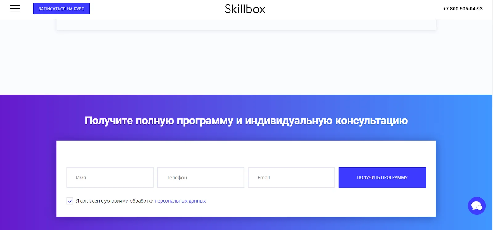 CTA-блок. Отдельный блок, который убеждает совершить целевое действие. Может повторно акцентировать внимание на преимуществах и выгодах. Включает кнопку или кнопку с формой.