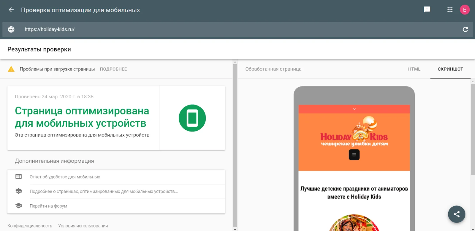 Отображение на мобильных. Важно, чтобы лендинг было удобно просматривать на смартфонах. Проверить это можно с помощью собственного телефона, а также специальных сервисов — они определяют, насколько хорошо страница адаптирована под мобильные, и подсказывает, как исправить ошибки.