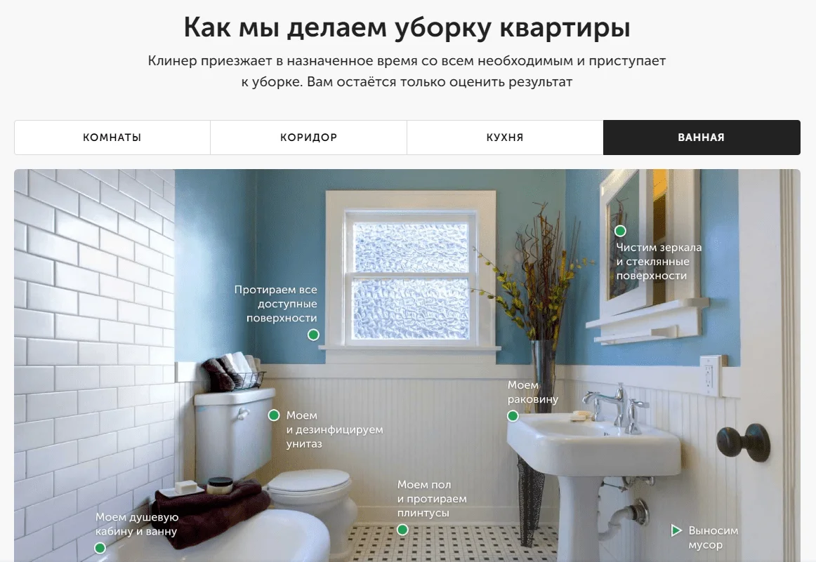 Рассказ о продукте. Блок с подробным описанием товара или услуги для тех, кто хочет узнать больше. Может включать этапы оказания услуги, сценарии использования товара, объяснение, кому подходит продукт.