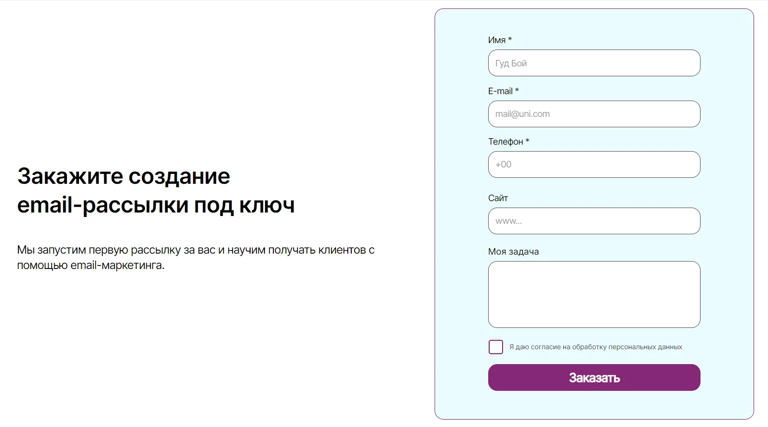 Получить контакты. Такие лендинги ещё называют лид-магнитами. Посетитель бесплатно получает какой-то ценный контент в обмен на email и/или телефон. Далее человек конвертируется уже с помощью рассылок, а иногда и звонков.