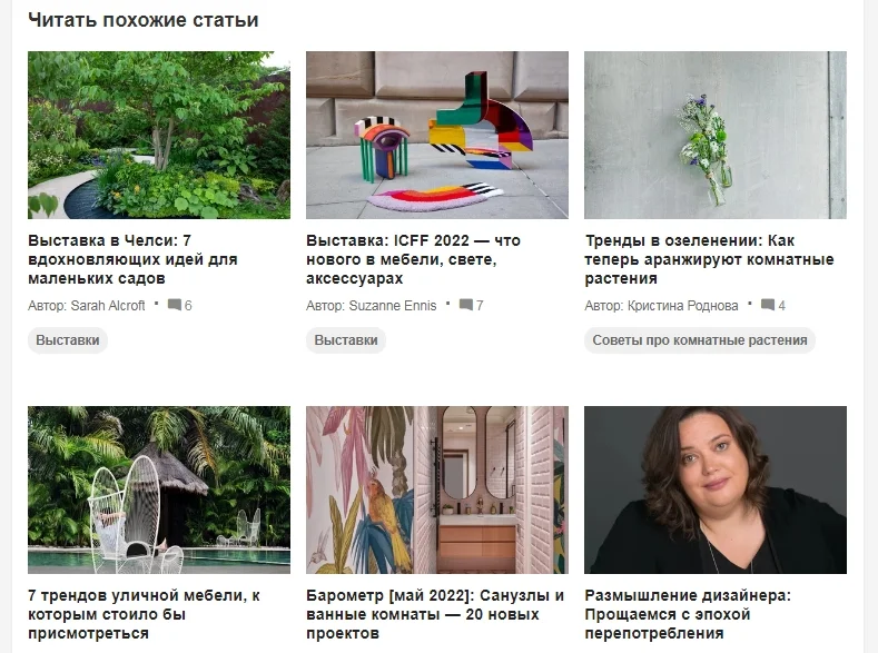 Подобная практика перелинковки блоками встречается не только в интернет-магазинах. На информационных сайтах или в блогах такие элементы помогают получить быстрый доступ к похожим статьям, которые могут заинтересовать пользователей. Это, в свою очередь, повышает время пребывания на сайте, глубину просмотра и другие поведенческие метрики.