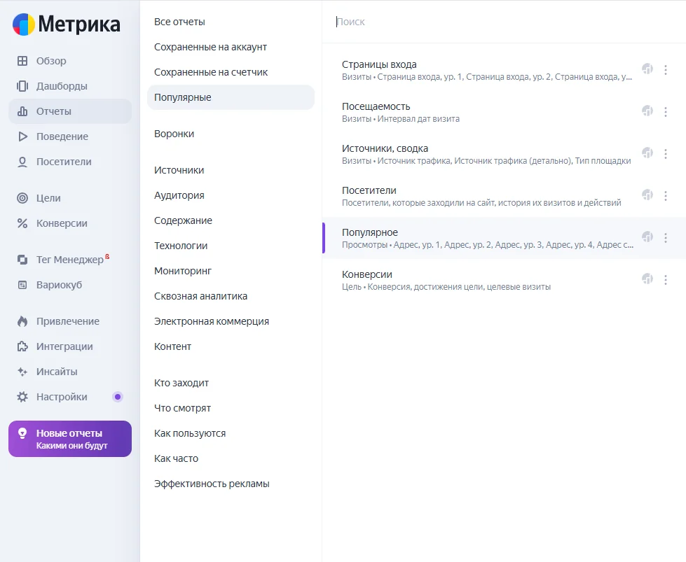 Для Яндекса я обычно смотрю популярные страницы в отчетах Яндекс Метрики.