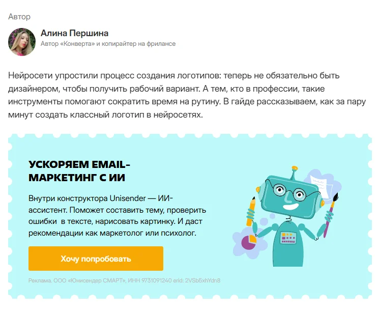 Ссылки можно добавлять как анкоры в контенте найденных страниц, если он позволяет (например, в нашем случае нужно искать в тексте ключевую фразу, которая полностью соответствует услуге — «аудит рассылок») либо вставлять баннеры/врезки с рекламой услуги.