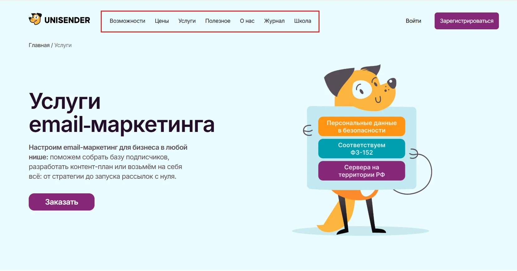 Пример: предположим, у Unisender появилась новая услуга — аудит рассылок. Для нее создана специальная продающая страница, но трафик на эту страницу пока минимальный. Как его увеличить с помощью внутренних ссылок: