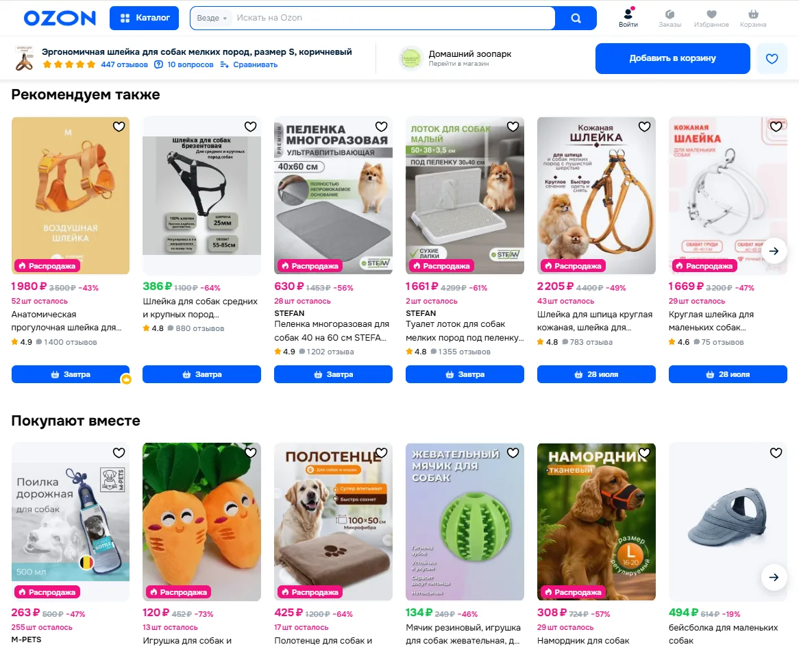 Такая схема перелинковки товаров встречается в большинстве крупных интернет-магазинов. Также в карточках часто ставят ссылки на страницы категорий и брендов.