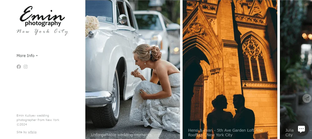 Wfolio. Платформа с удобными шаблонами для фотографов. Можно сделать визитку с упором на фотосессии и отдельные снимки, добавить работы с Яндекс Диска и настроить прием платежей.