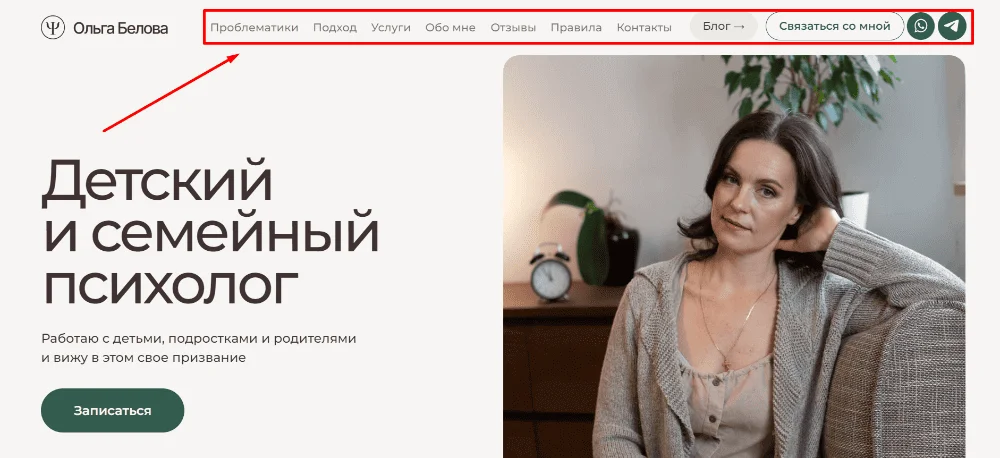 Иногда блок «О себе» и преимущества выносят на главную, а разделы с проектами и отзывами — на следующие страницы сайта. Но при таком подходе есть риск переполнить визитку, ведь не все пользователи будут тщательно изучать каждый раздел.