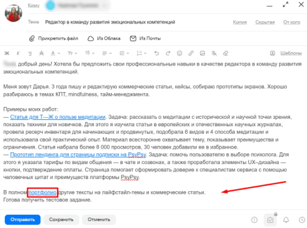 Письмо. Исполнитель может отправить отклик на вакансию, прикрепив ссылку на сайт-визитку как портфолио работ. Владелец бизнеса может поделиться ссылкой в деловой переписке — по личной базе контактов, при общении с партнерами и инвесторами.