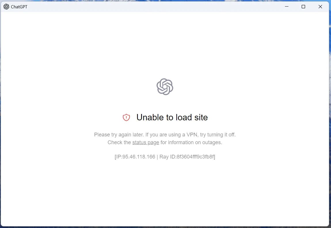 Чтобы пользоваться чат-ботом, обязательно смените IP-адрес на иностранный. Если ошибка не исчезает, попробуйте поменять адрес. Система блокирует популярные подменные IP-адреса, поэтому с ними сервис может не работать. Вместо Нидерландов или США поставьте Грузию, Казахстан или Армению.