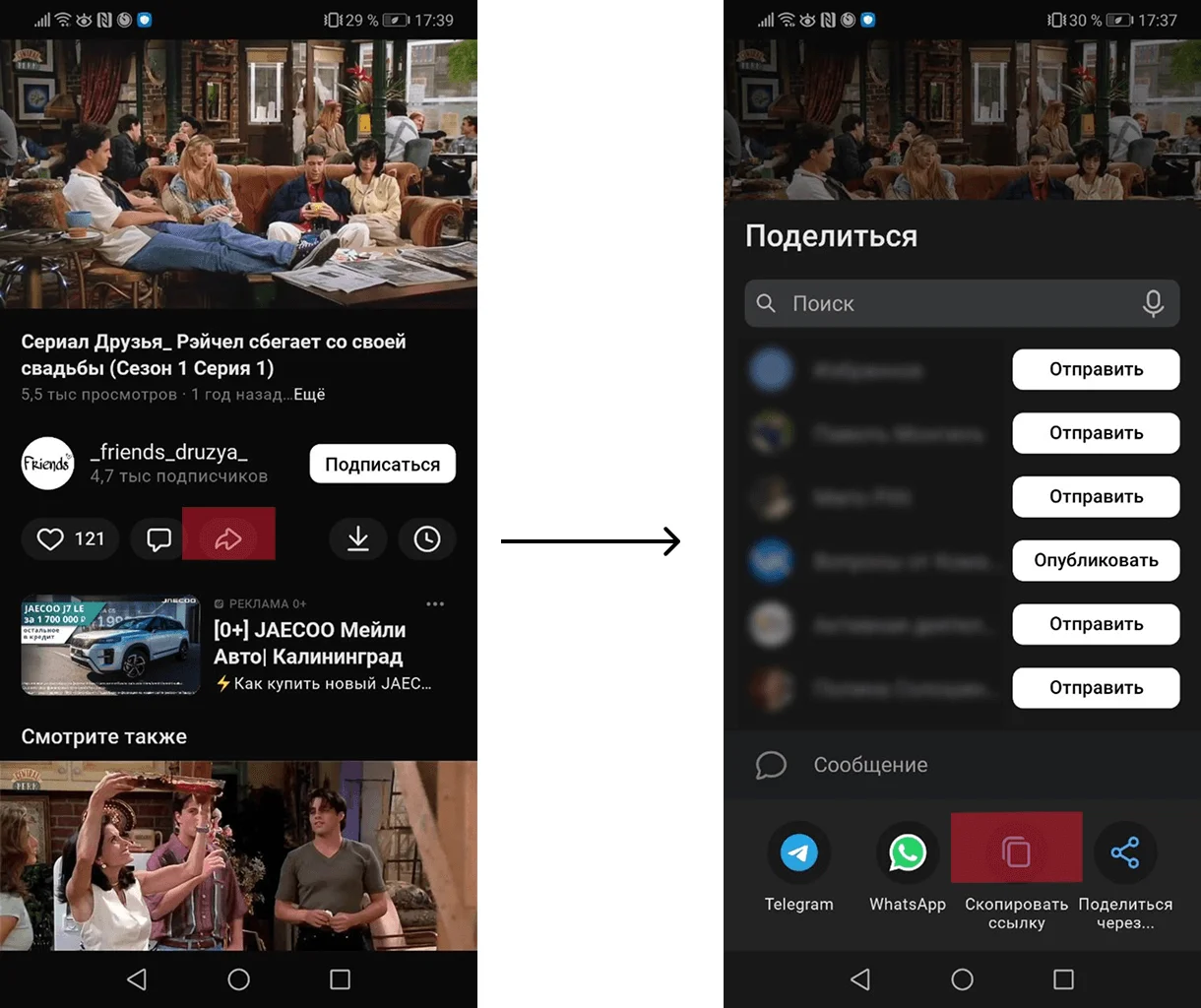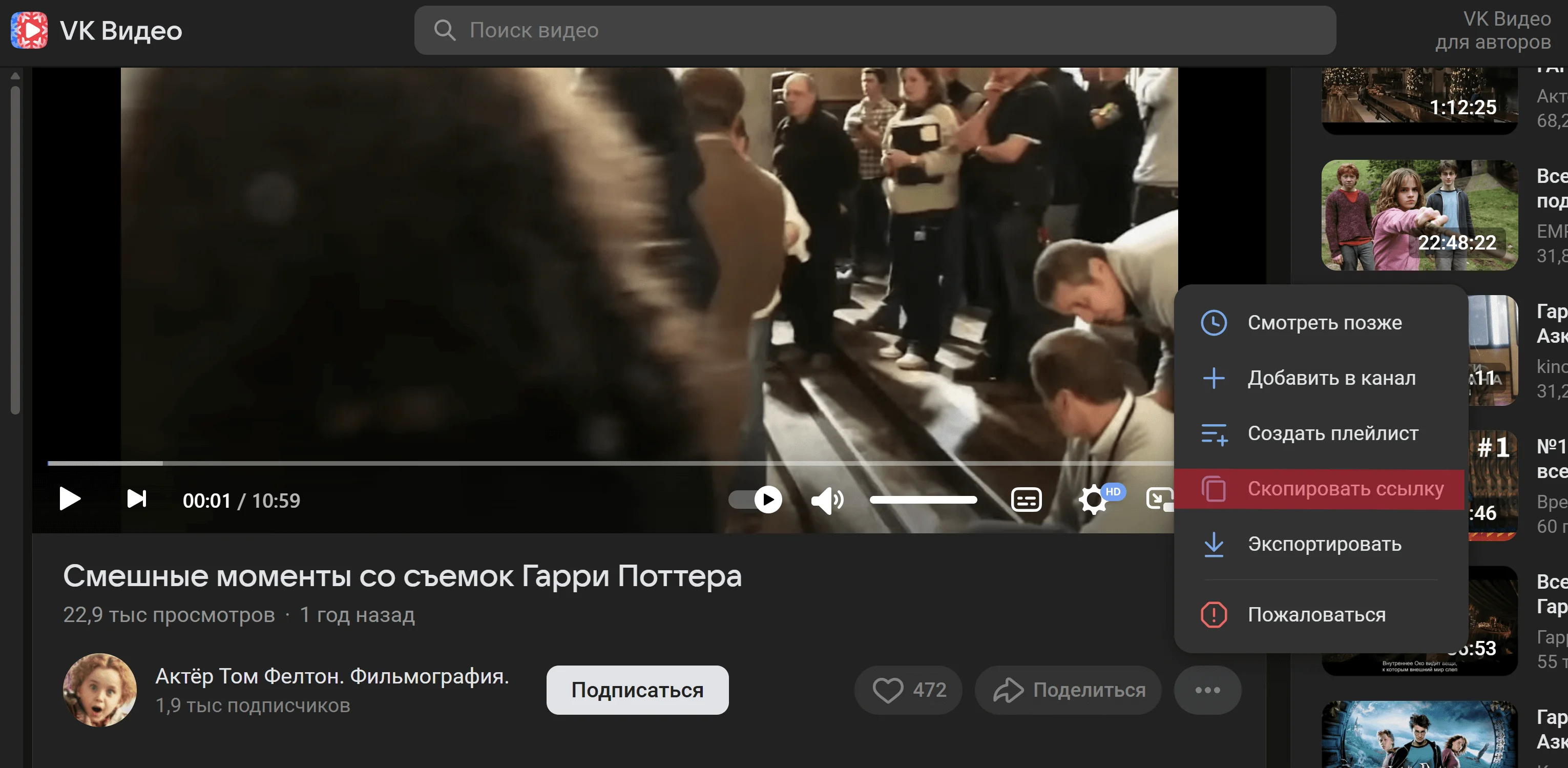 Чтобы скачать видео, найдите его в VK Видео и скопируйте ссылку — она спрятана в меню «Поделиться», за иконкой в виде стрелки.