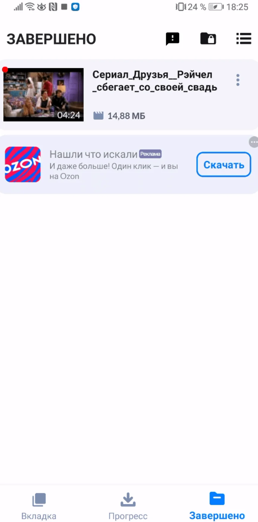 Видео сохранится во вкладке «Завершено». Посмотреть видео в ней можно даже без доступа к интернету.