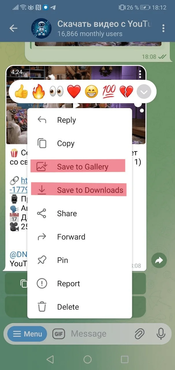 После загрузки видео сохранится в чате с ботом, откуда его можно будет скачать.