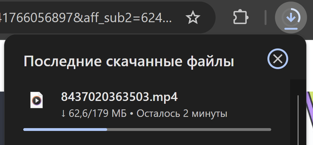 По клику на кнопку «Скачать», откроется окно с рекламой, а видео начнет загружаться во вкладку «Загрузки» браузера.