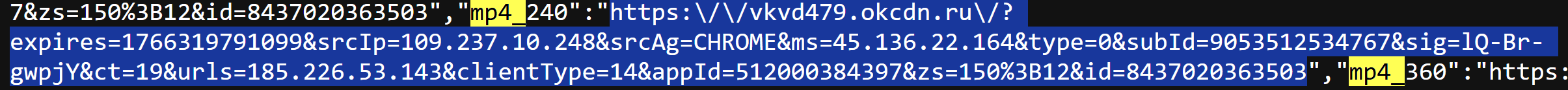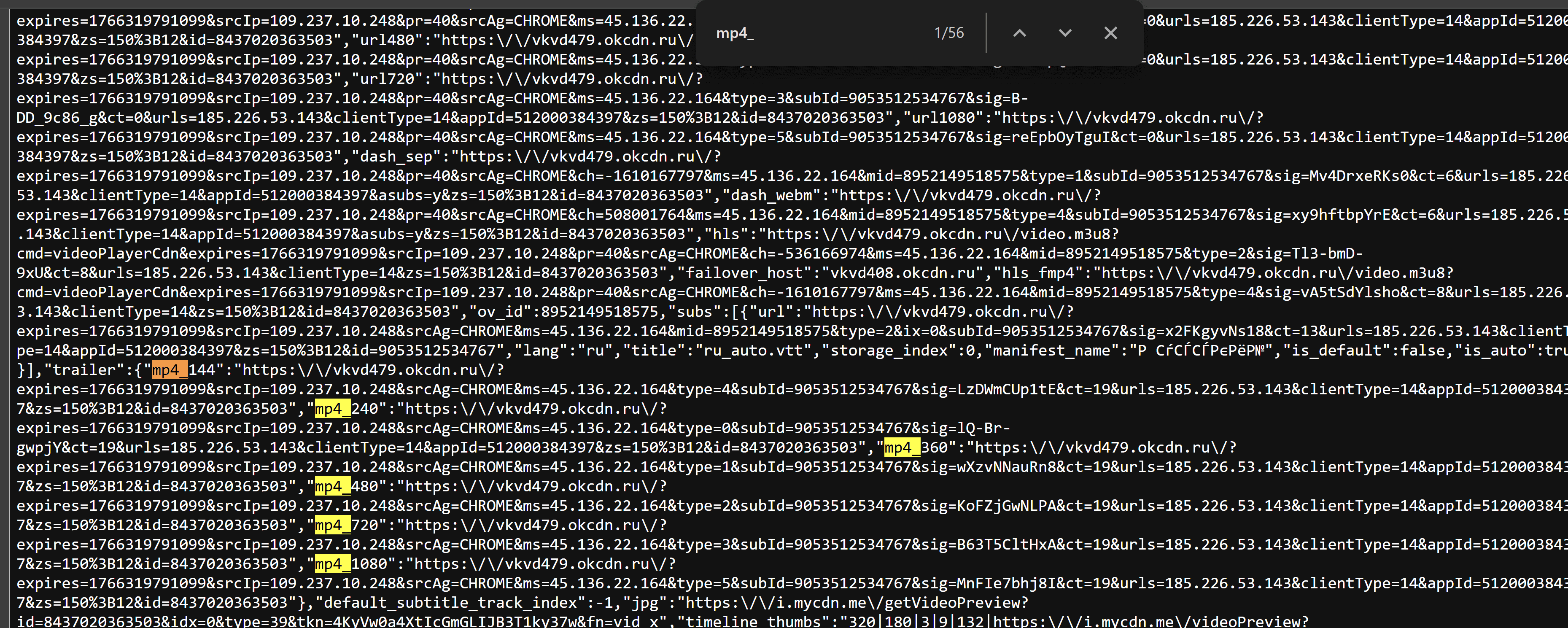 Выберите видео нужного разрешения. После «mp4_разрешение» через двоеточие в кавычках есть ссылка на видео. Скопируйте ее целиком — от «https» до закрывающей кавычки.