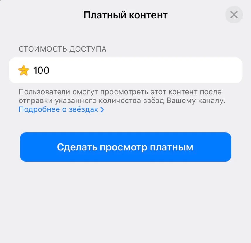 2. Telegram предложит вам поставить цену за просмотр. Можно обозначить любую.