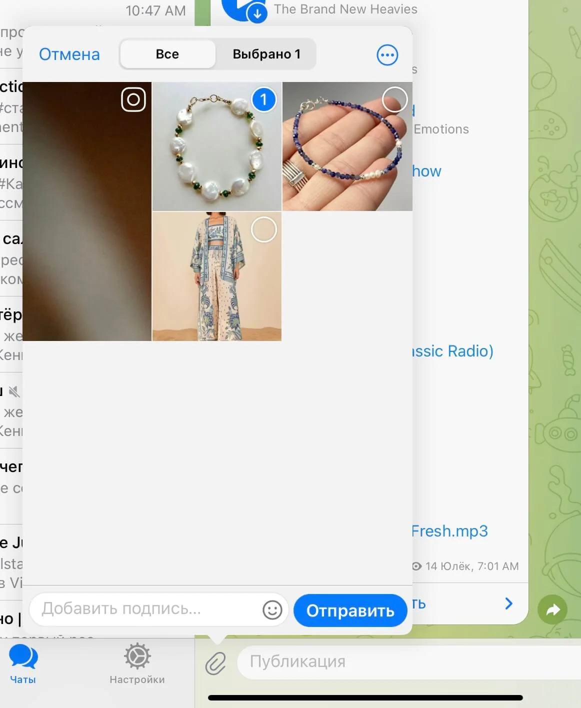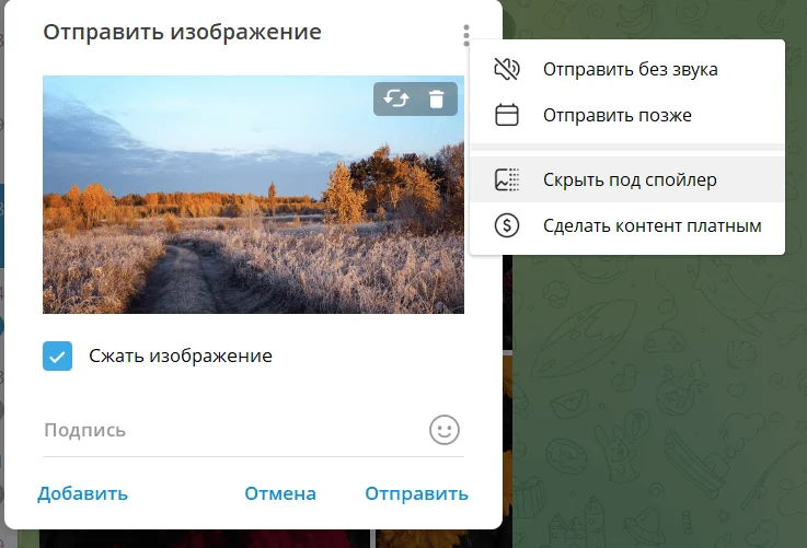 8. Когда картинка скрыта, остается только отправить ее в канал или чат.