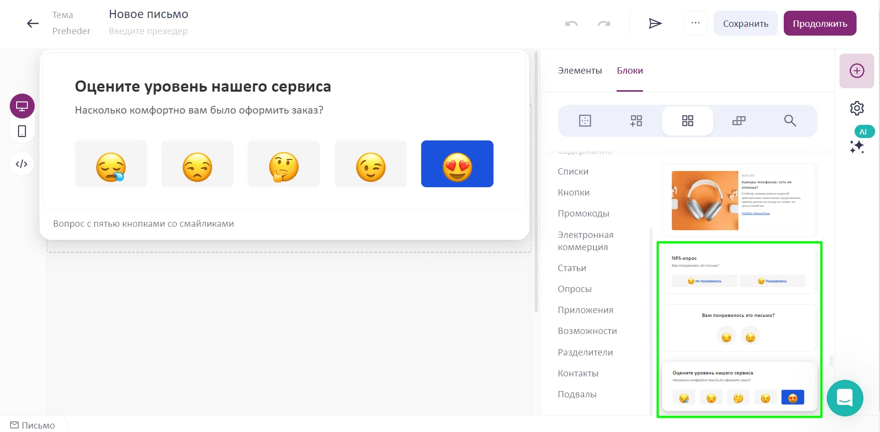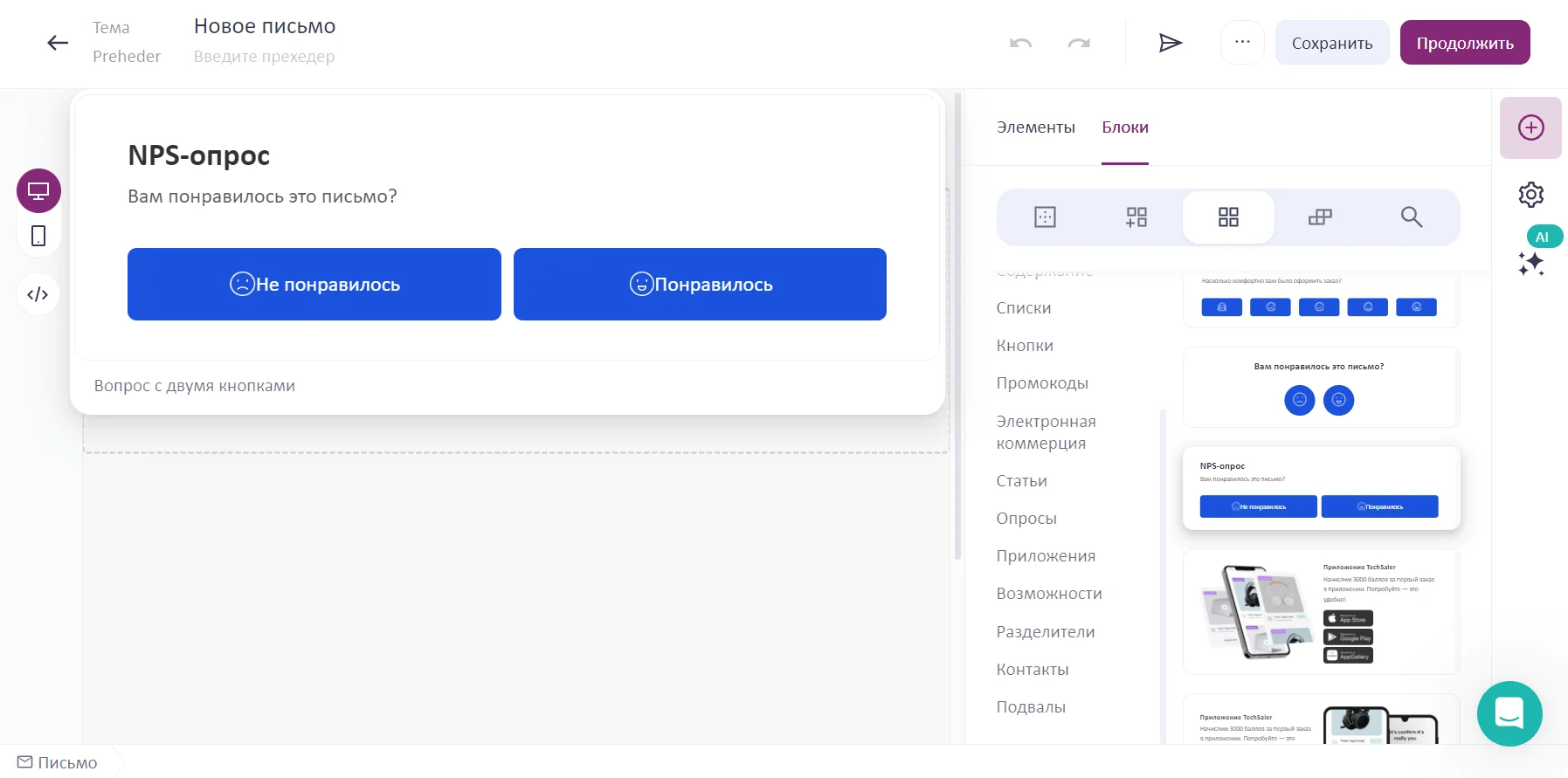 Всё для быстрого старта в email: блочный редактор, 200 шаблонов, ИИ-помощник.