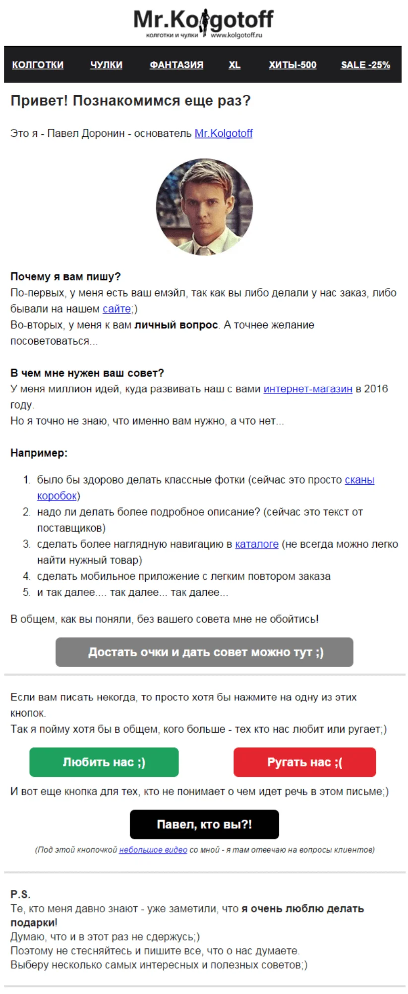 Попросите подписчиков оставить подробный отзыв на сайте, странице товара или специализированном ресурсе. Добавьте в письмо кнопку или ссылку, которая перенаправит пользователя на нужную страницу. По возможности сделайте форму простой с минимумом полей.