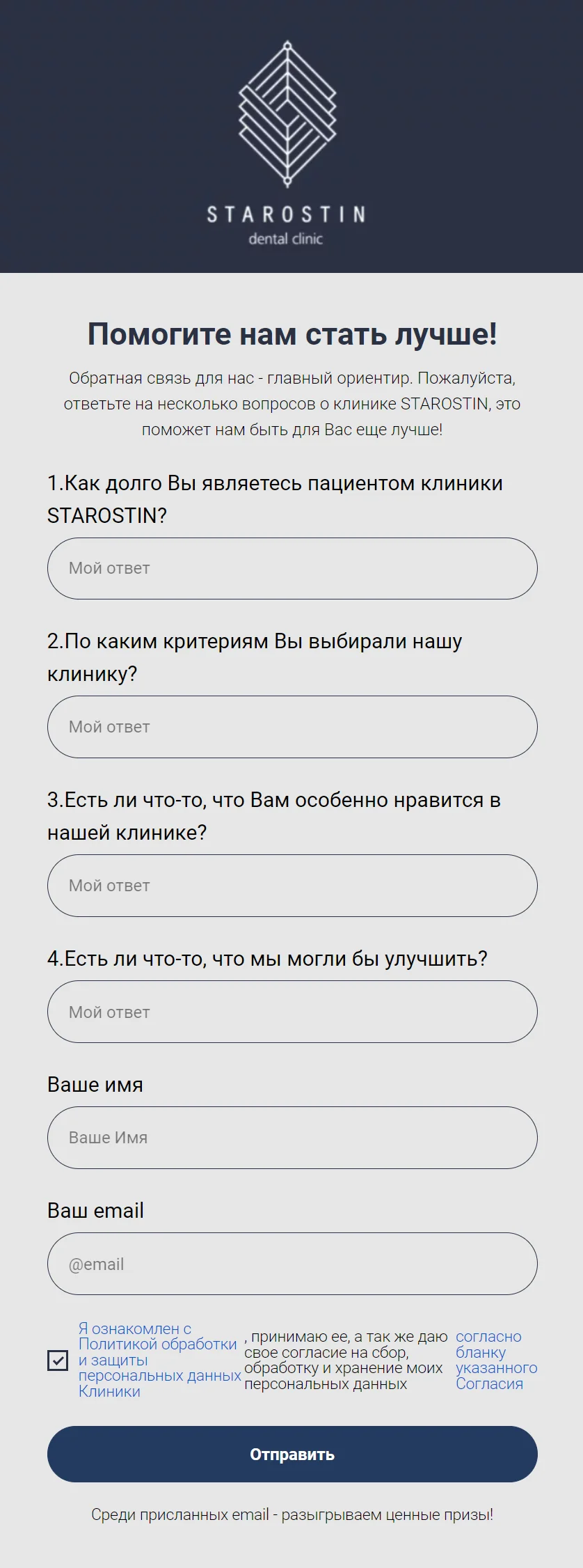 Конечно, велик соблазн задать сразу много вопросов и получить подробный отзыв. Но делать этого не стоит, чтобы не остаться совсем без обратной связи. Мало кто из клиентов согласится потратить на написание отзыва много времени. Выберите 2–4 вопроса, ответ на которые займёт несколько минут.