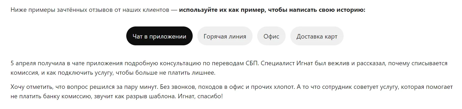 Иногда клиенты отказываются от отзывов из-за того, что не умеют их писать. Упростите им задачу, предоставив шаблон, который можно взять за основу. Так клиентам будет проще сформулировать мысли. Например, шаблон может выглядеть так: