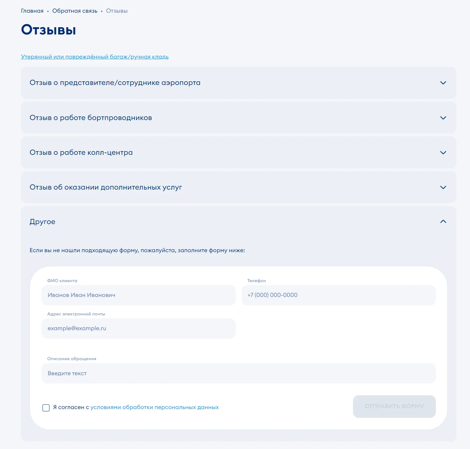 Если вы используете форму для получения обратной связи, то сделайте её простой и удобной. Чем меньше полей нужно заполнить, тем больше вероятность, что клиент дойдет до конца.