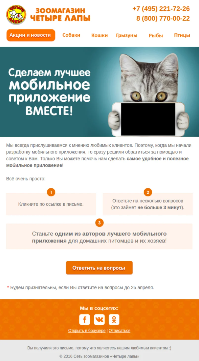 Позвольте клиентам выбирать способ взаимодействия с компанией. Собирайте отзывы по email и в мессенджерах, через сайт и мобильное приложение. Поощряйте клиентов делиться мнением на ваших страницах в соцсетях и на сторонних специализированных платформах.