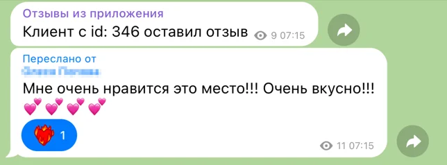 Также нельзя начислить баллы по номеру телефона или другим данным пользователя. Нужно, чтобы гость сначала оставил отзыв в боте. По нему мы находили его аккаунт и начисляли баллы. Надо ли говорить, что часть и без того сердитых людей отваливалась и продолжала сердиться в другом месте.