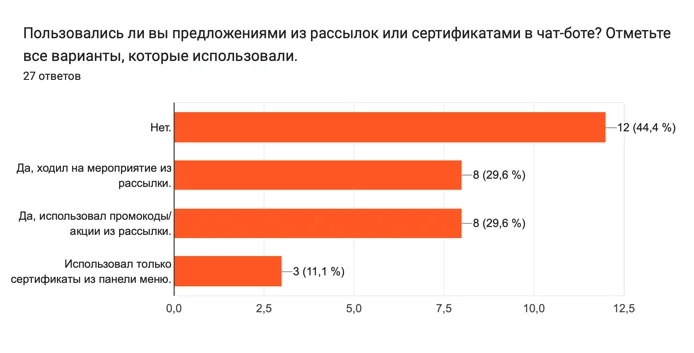 Задачей онлайн-анкетирования было понять, насколько актуальны рассылки и сертификаты, и пользуются ли люди предложениями из них.
