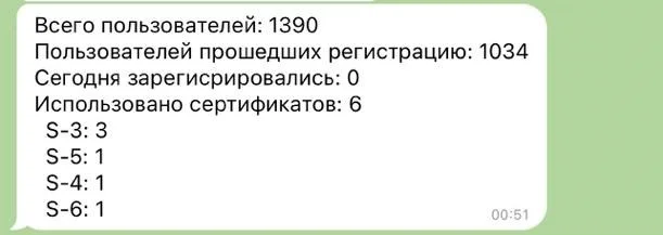 Нет аналитики. Первые месяцы ее не было совсем, да и позже ситуация не сильно выправилась. Чтобы понимать отдачу от специальных предложений, приходилось внедрять промокоды, что не добавляло удобства ни гостям, ни сотрудникам. Последним нужно было вносить коды в еще один бот, о чем они успешно забывали. В сообщениях рассылки я делала ссылку с UTM-меткой на сайт и перехватывала пользователей уже там. Лишь недавно автор бота настроил отчеты о количестве подписок в день и количестве использованных сертификатов. Положение это не спасло, но стало лучше, чем было.